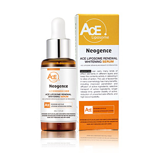 有明顯橘色的瓶身的是ACE系列…它的訴求是 煥膚、美白、抗老